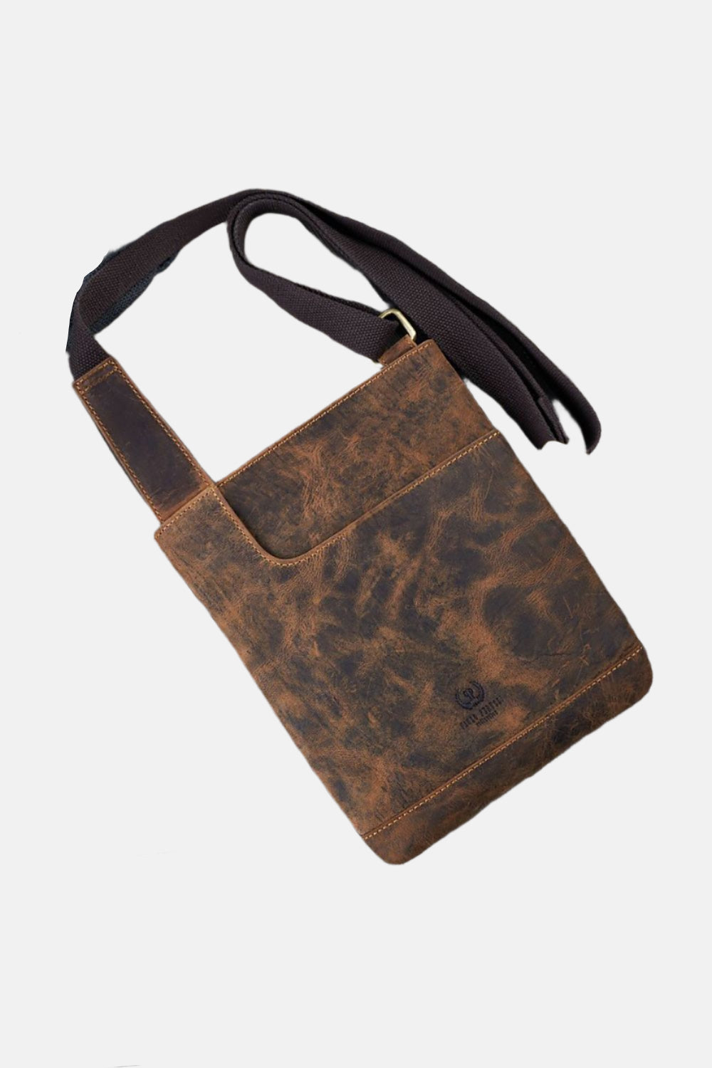 A handy-sized shoulder postbag, which will find a use in every woman's closet. Made of aged natural leather, it will be a fashionable and practical addition to everyday outfits. The bag has a slip front pocket for the most frequently pulled accessories and a back zipper pocket. The zippered main compartment features two pockets, a slip pocket and a zippered pocket. Thanks to an adjustable, braided strap with a length of 80-135 cm, you can wear the postbag the way you like best, on your shoulder or slanted.