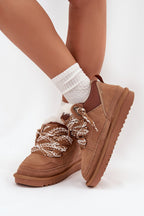 Low snow boots for women from Vinceza made of natural suede are the perfect choice for winter days. Lined with soft fur, they provide comfort and warmth even in low temperatures. Thick lacing allows for a perfect fit to the foot, and a solid sole made of rubber material guarantees a secure step on slippery surfaces. Stylish, functional, and ready for any winter adventure.